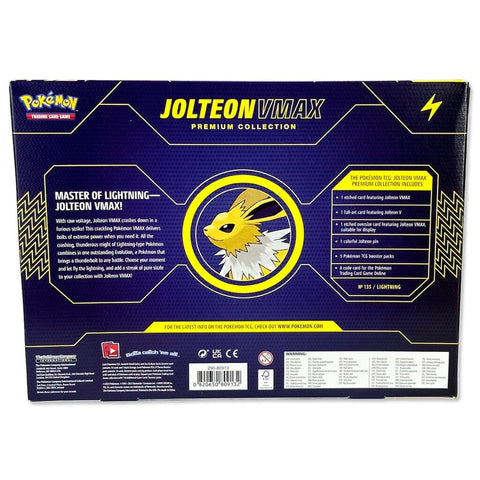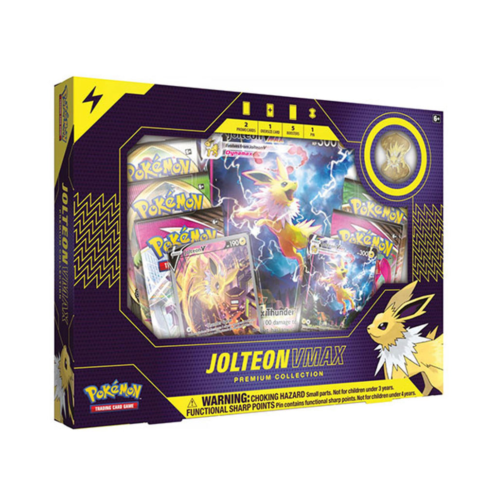 Die Jolteon VMAX Premium Collection bringt das beliebte Elektro-Pokémon aus der Evoli-Entwicklung als kraftvolle V- und VMAX-Promokarten in deine Sammlung – mit spektakulärem Artwork und stylischem Zubehör. Perfekt für Fans, Sammler und Strategen, die einen echten Blitzschlag am Spieltisch setzen wollen!