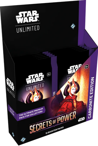 Das Secrets of Power Carbonite Booster Display ist das ultimative Highlight für alle, die Star Wars: Unlimited lieben und ihre Sammlung mit seltenen, exklusiven Karten aufwerten möchten. Hochwertig, limitiert, episch – greif zu, bevor es im Hyperraum verschwindet!