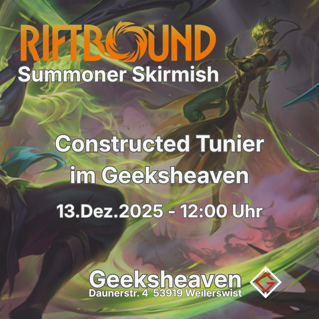 Beim Riftbound Summoner Skirmish treten Strategen und Deckbauer gegeneinander an, um sich im intensiven 1v1-Kartenkampf zu messen. Riftbound kombiniert klassische TCG-Elemente mit dynamischer Fraktionsmechanik – und bietet dabei jede Menge taktische Tiefe!